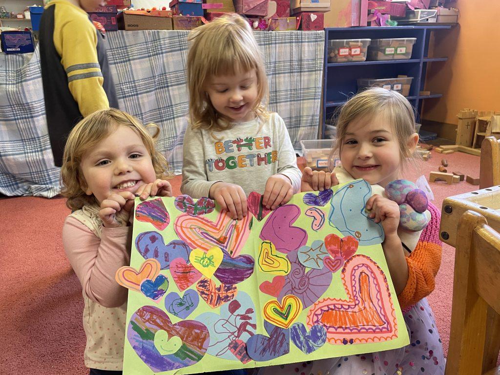 During free time children enjoy playing together in the classroom, trying new games and projects at the tables and taking turns in the art area.